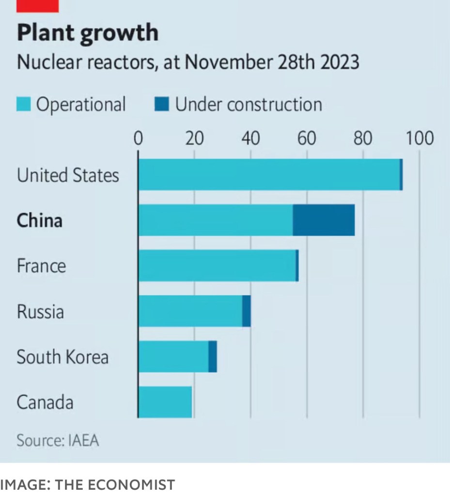 Chart – Nuclear reactors under construction, The Economist On December 3, 2023 By Richard WilsonIn Uncategorized The Economist. (2023, November 30). Chart: Plant Growth. The Economist. Retrieved from [https://www.economist.com/]. Share this: Share on X (Opens in new window) X Share on Facebook (Opens in new window) Facebook Like Loading... Related