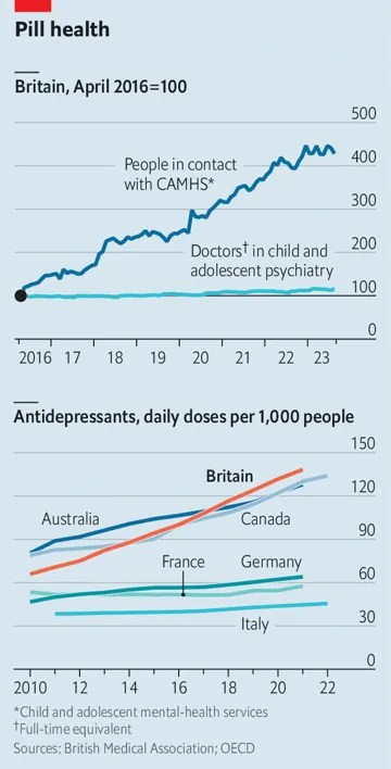 “Britain’s mental-health crisis is a tale of unintended consequences: Rising awareness appears to be hurting the people with the most serious conditions” in The Economist, 8 Dec 2023, accessed: 10 Dec 2023